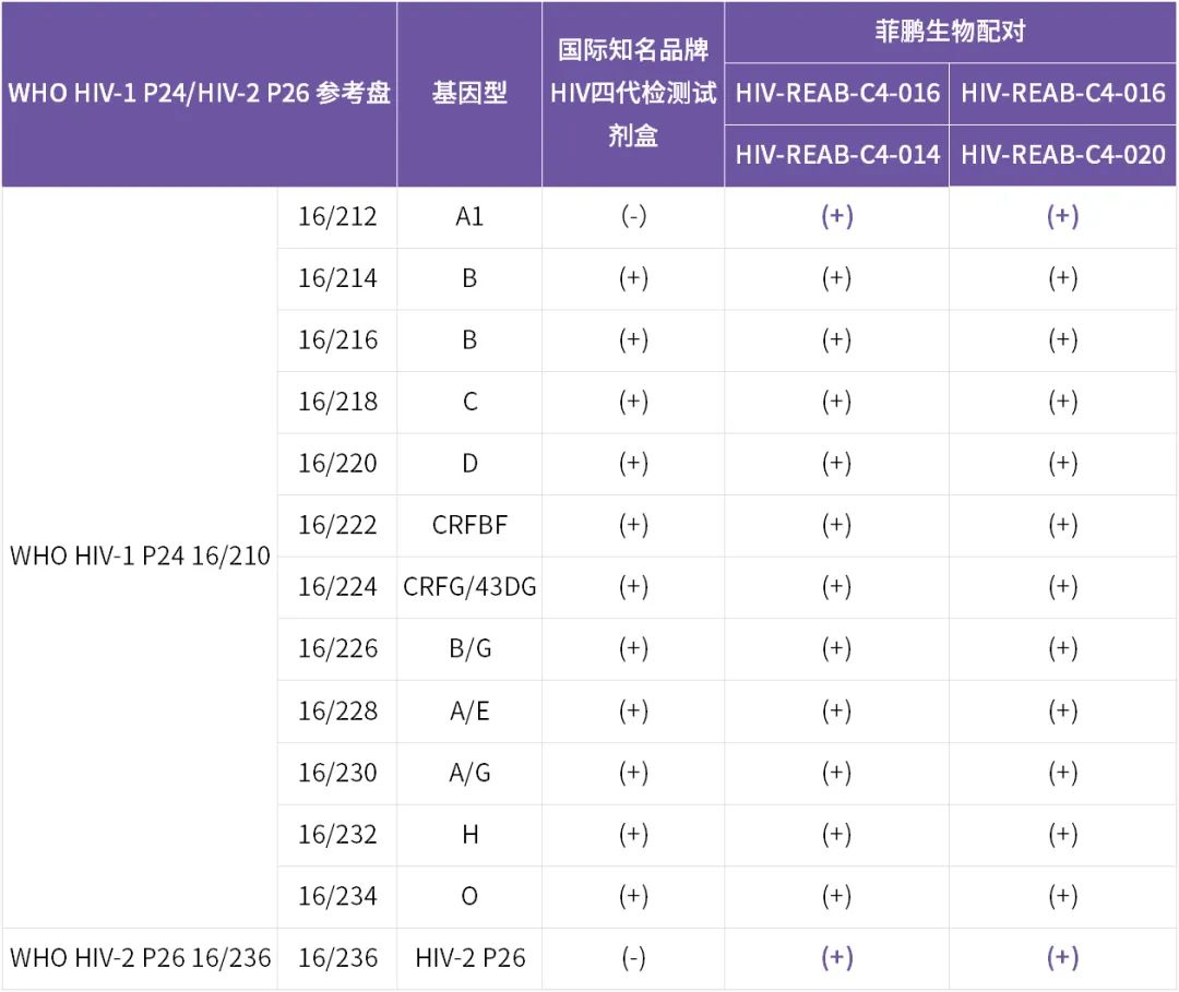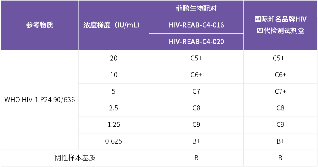 菲鵬生物HIV-P24原料配對(duì)可檢出WHO HIV-1 P24 16/210及WHO HIV-2 P26 16/236所有樣本。