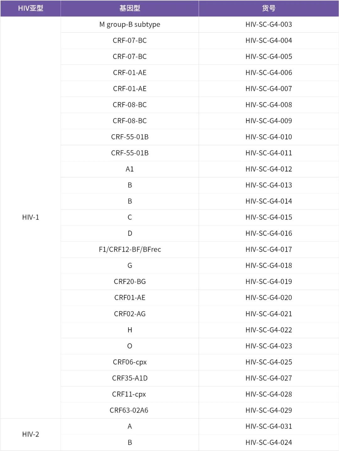 HIV-P24原料已測(cè)試以下亞型,均可檢出