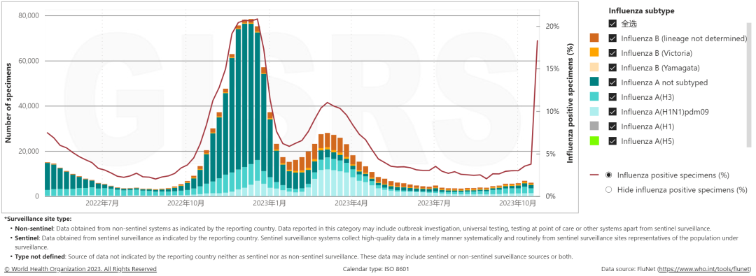 [2] FluNet (www.who.int/toolkits/flunet). Global Influenza Surveillance and Response System (GISRS) Data generated on 16/10/2023