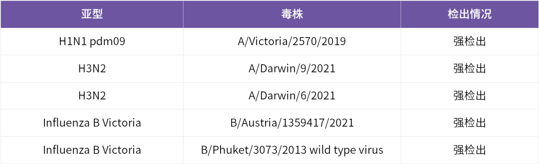 除此之外,菲鵬生物對(duì)80+ ZeptoMetrix Influenza Rapid Test Verification Panel以及NIBSC Panel 中的流感毒株進(jìn)行了驗(yàn)證,均能有效檢出。