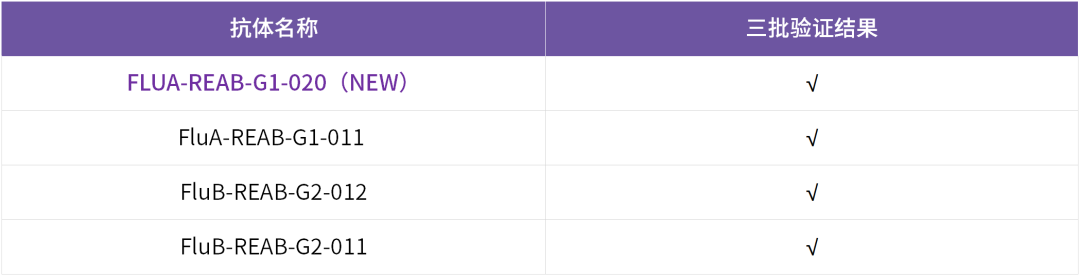 菲鵬生物為了保證抗體性能符合中游廠商的試劑要求,在流感聯(lián)檢模式下,對(duì)近期國(guó)內(nèi)流行的流感病毒以及美國(guó)CDC要求驗(yàn)證毒株做重點(diǎn)測(cè)試: