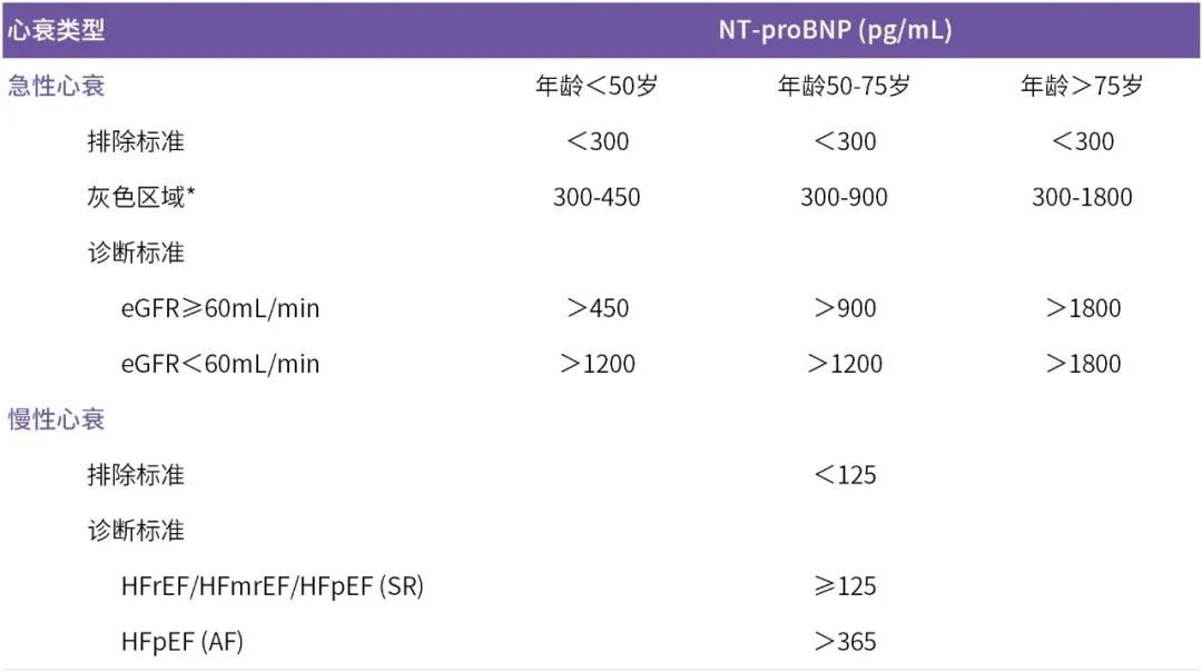 表. 診斷/排除心力衰竭的NT-proBNP界值[6]