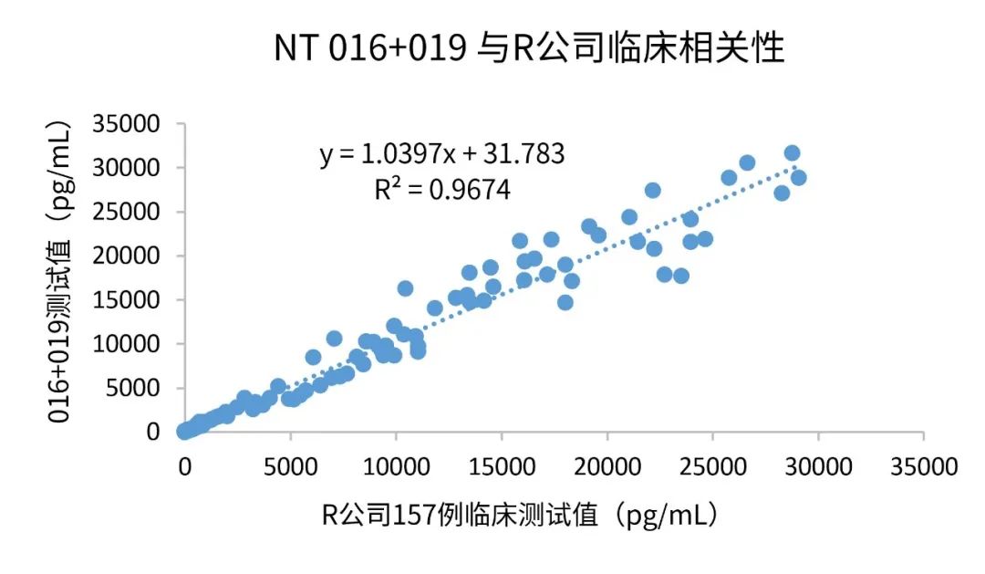 在免疫熒光平臺上,同R廠家進行了157例臨床樣本比對,臨床相關(guān)性R2≥0.96。