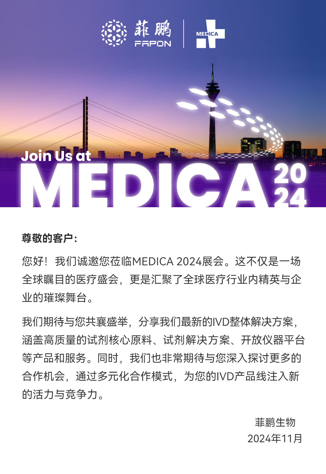 邀請函 | 菲鵬邀您共赴德國 MEDICA 2024 醫(yī)療盛會